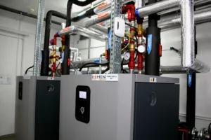 Lokalizacja wspomnianej inwestycji to Oleśnica, przy ulicy Energetycznej. Montaż systemu grzewczego odbył się w budynku przemysłowo-biurowym. Temperatura pomieszczenia, w którym znajdują się pracownicy, bardzo szybko może osiągnąć żądany poziom, mamy niskie spadki energetyczne oraz znacząco zmniejszają się nam koszty eksploatacji, szczególnie w porównaniu ze znanymi i tradycyjnymi systemami grzewczymi. Montaż wspomnianego projektu, czyli instalację pompy ciepła, wykonaliśmy w 2022. Wewnątrz budynku wykonaliśmy również wyposażenie kotłowni, elektrycznym sterownikiem, który pozwala w łatwy sposób sterować parametrami ogrzewania, daje wysoki komfort, zapewnia efektywne ogrzewanie domu czy, jak w przypadku naszego projektu, biura. Gruntowe pompy ciepła to również sposób na ekologiczne ogrzewanie, szczególnie, gdy poprzednia instalacja została stworzona w bardzo starych technologiach o wysokim zużyciu zasobów.